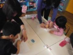 今日は、粉クレヨンを使った「パステルアート」という製作に挑戦しました!初めて粉クレヨンを使った子どもたちは、とても楽しそうで、使いたい色があったら、お友だちに 「きいろ貸して!?」 「いいよ!」 とか 「代わりにあかどうぞ!」 など、貸し借りが出来るようにお母さん方も援助してくれていました。…