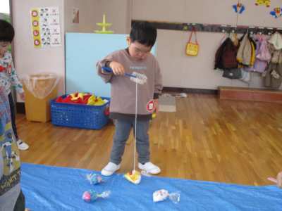 今日は、参観日に行う予定だった魚釣りを行いました。