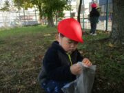 帽子を被っているどんぐりを探す子や大きいどんぐりを探している子など。
