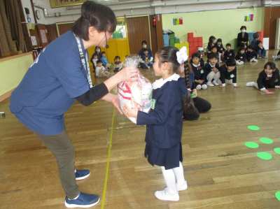 最後は、年長さんVS先生たちでひなあられをかけて勝負しました。