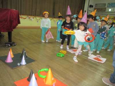 お遊戯室に集まってハロウィンパーティの始まりです🌟