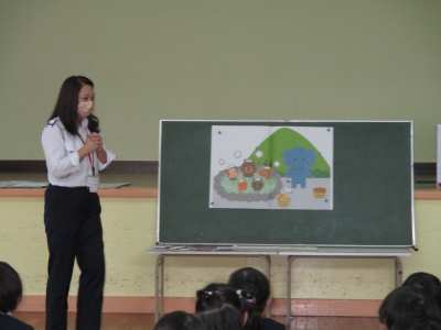 その後、指導員さんのペープサートでお話を聞き、真剣に聞いたり、面白い場面では声を出して笑っていた子どもたちでした😊