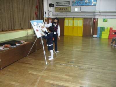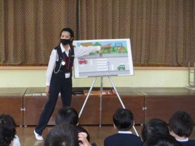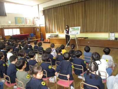 今日は交通安全教室が行われ、冬の交通安全についてお話をしてくれました。