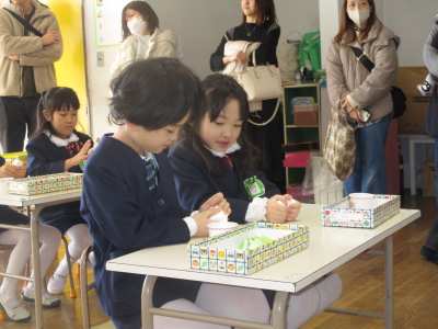 今日は、年長児の参観日が行われました。最後の参観日にちょっぴり緊張していた子どもたち。