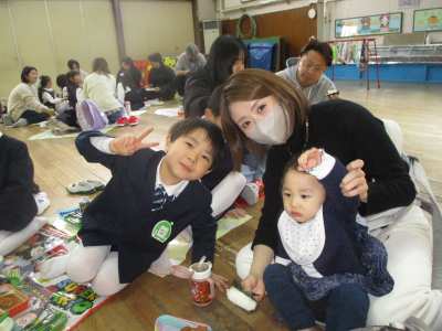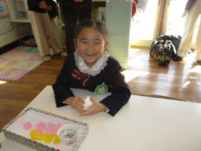 完成したら、保護者の方に近くへ行き、「いつも、ありがとう」と言葉を添えながらプレゼント出来ました!