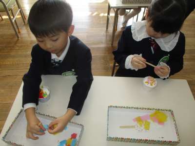 丁寧に時間をかける子や切った花紙を全部使う子など、それぞれに思いを込めながら集中して作っていたかぜぐみさんです♡