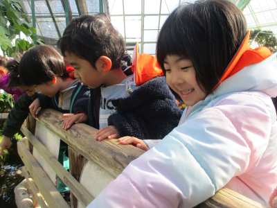 「お猿さんいるかな?」「いろんな生き物もいるかも!」と、朝からワクワクの子どもたち。