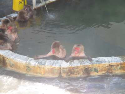 そして、お猿さんも発見!「温泉に入ってるじゃん!」「あ!喧嘩してるかも!」と、夢中で観察する子どもたち。 餌を手に持ち、遠くにいるお猿さんまで届くように餌を投げる様子が可愛らしかったですよ💕