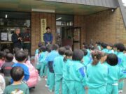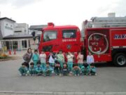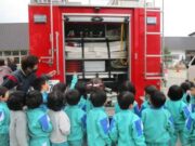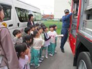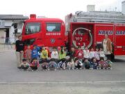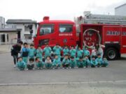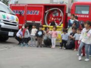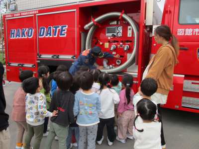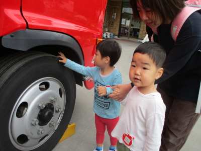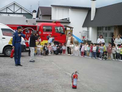 今日の避難訓練は、消防車にふれる会と、先生方の消火訓練も兼ねて実施されました。