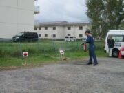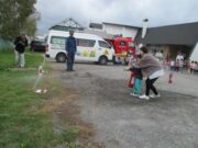 消防士さんからお話のあとは、いよいよ消火訓練。