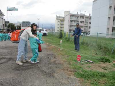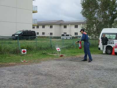 消火器の使い方を教えてもらい、「火事だ!」と大きな声で周りに知らせ、無事消火することができました!