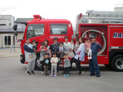 その後は消防車と一緒に記念撮影をし、消防車を見学しました🚒