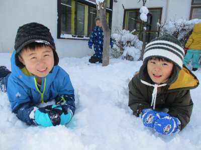 雪だるまを作ったり、雪合戦をしたり… 友達と一緒に仲良く遊べましたね💕