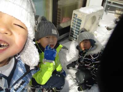 今年初めての幼稚園で雪遊び🎵 子どもたちもウキウキ・ワクワクです😊