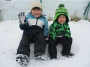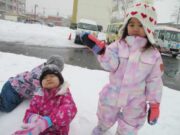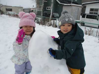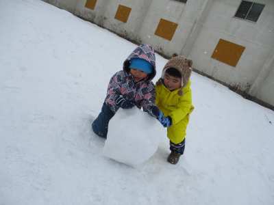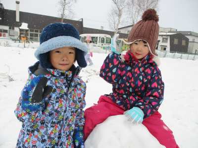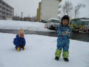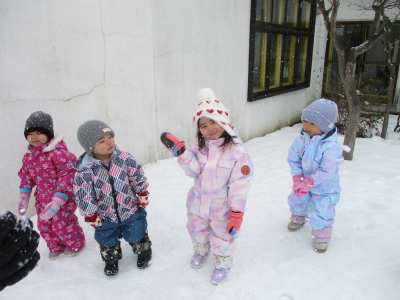 外に出ると雪が降っていましたが、みんな元気いっぱい遊んでいました。