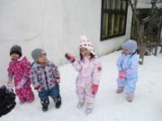 今日は、雪遊びをしました。前回に続き2回目の雪遊び。この日を楽しみにしていた年少さん。