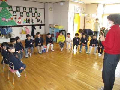 今日は、感染拡大防止のため、各クラスで終業式を行いました。各部屋では園長先生から冬休みの過ごし方などのお話をしていただきました。みんな真剣にきいていましたよ。