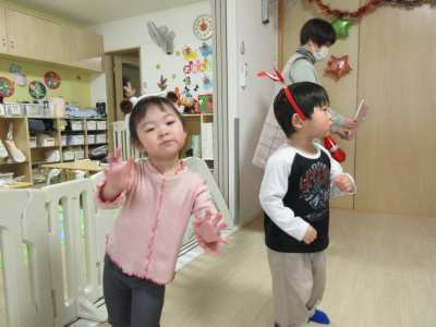 クリスマスの絵本を見たり、手遊びをしたり、クリスマスの音楽に合わせて踊って遊びました🎵