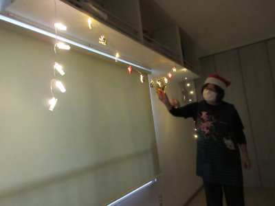 次は暗いお部屋に移動して、クリスマスの飾りをライトアップ🔦