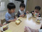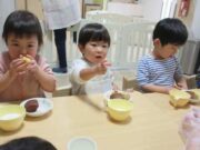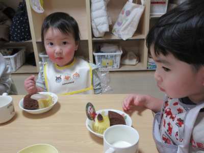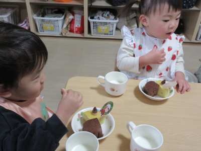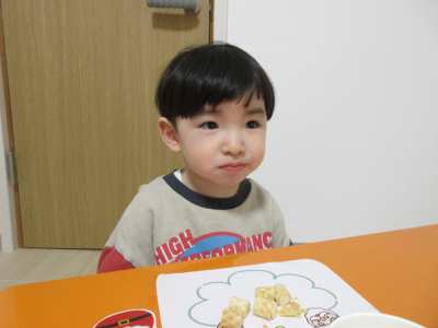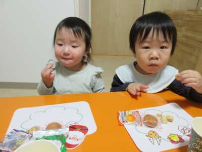 給食を食べ、午睡のあとのおやつは「クリスマス蒸しパン」!