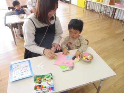自由遊びの時間になり、好きな遊びを見つけて遊びました。
